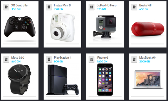 Here’s a screenshot of some of the Electronics prizes you can win on Gokano: