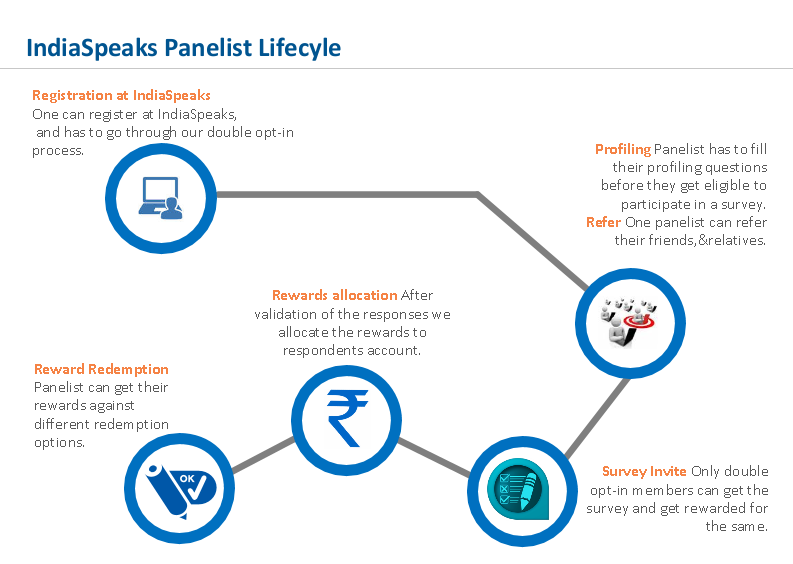 The panelists registered with IndiaSpeaks earn reward points for participating in the surveys. They are periodically informed about the surveys through email. On receiving an invite to participate in a survey, a panelist has to answer a short screener questionnaire which enables IndiaSpeaks to identify if the panelist matches the target audience criteria required for the survey. And once your responses to the survey have been captured by our server, you will earn reward points that you can redeem.