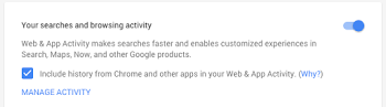 1. Verify Web & App Activity is enabled by clicking here and clicking the toggle.