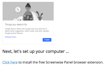 2. Click the Click here link to the Screenwise Chrome extension provided by the panel management company.
