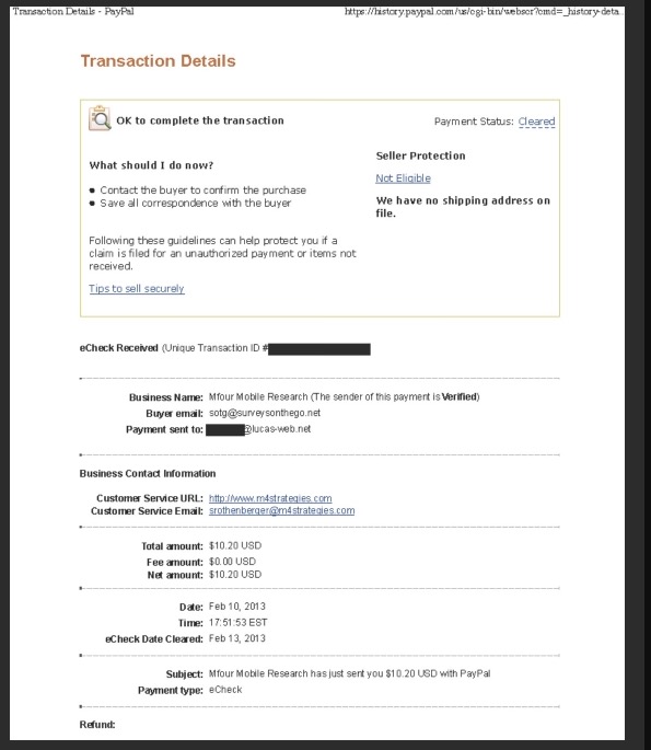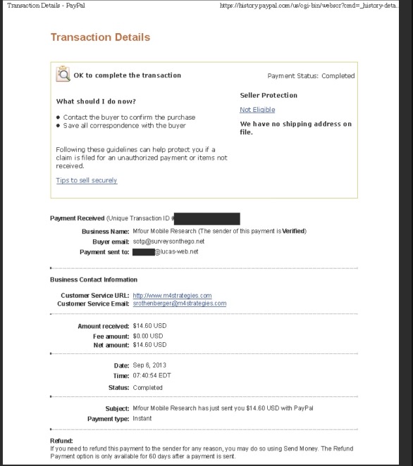 Surveys on the Go Payment proofs