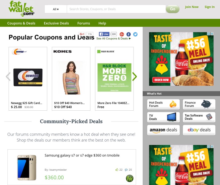 Fatwallet.com is among the top coupon websites online. Most FatWallet™ shoppers are looking for a quick and easy path to online coupons and deals…and they’ve made it that simple. Whether you’re in need of a store coupon or the hottest deals by category, you’ll find the latest coupon codes, promo codes and sale discounts from more than 1,600 trusted and popular online stores like Newegg, Walmart, Amazon and eBay.